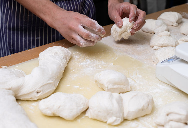 創業以来パンの美味しさと、お客様の健康にまで配慮したパンづくりを大切にしています。美味しいパンをご提供することはパン屋として当たり前。加えて、毎日でも食べていただきたいパンだからこそ、安心して召し上がっていただける商品のご提供に力を入れています。たとえば、当社は食品添加物をいっさい使わず、アレルギーの一因となる食材についても店内にてきちんと情報をお伝えしています。お店に足を運んでくださるお客様と1日でも長くいいお付き合いができるよう、これからもより一層「美味しさと質」の向上を追求しています。
